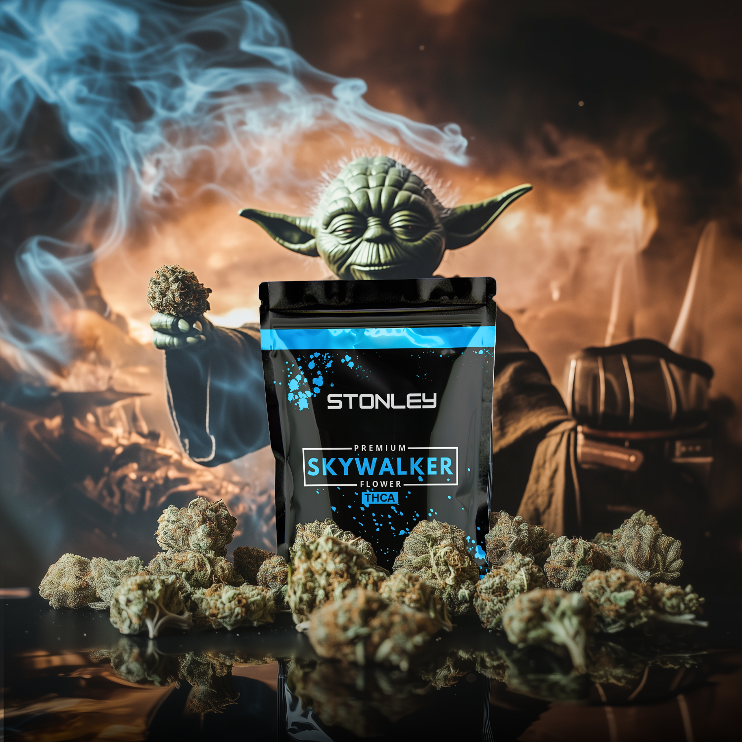 Skywalker brings together visual beauty, bold aroma, and a high THCA concentration in one well-rounded profile. A premium product for those who value character and craftsmanship.